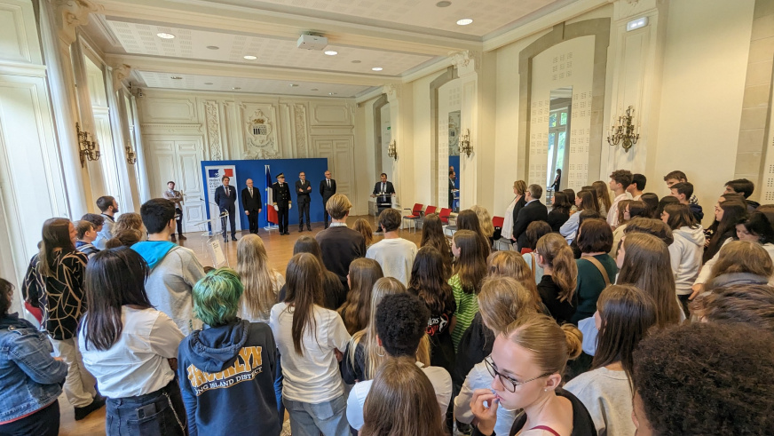 Les élèves de 203 ont participé à la journée en mémoire des victimes de l’esclavage en tant que participants du concours de la flamme de l’égalité ce mardi 23 mai 2023 à la préfecture de Rennes.