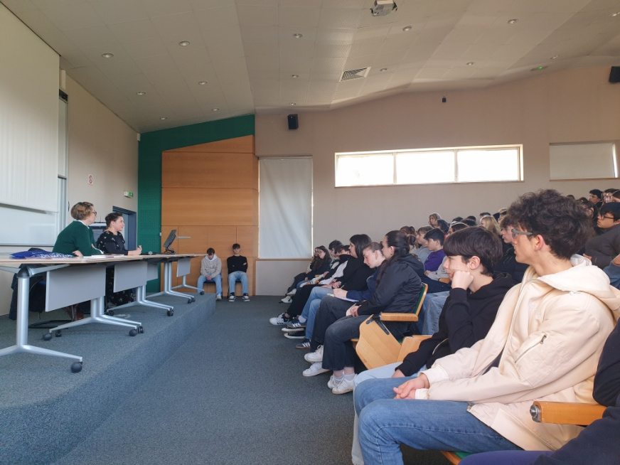 A l’occasion de la journée contre les violences faites aux femmes, nous avons invité l’écrivaine Julie Caré qui a témoigné devant un amphithéâtre plein. Beaucoup de questions et un intérêt certain de la part des élèves.