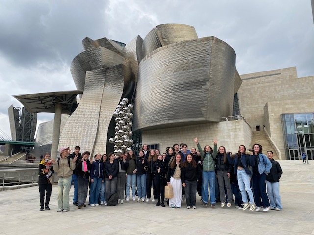 Séjour pédagogique du 23 au 28 mars 2025 à Bilbao, avec des élèves de Première et Terminale. Pendant leur séjour, les élèves ont visité les villes de Bilbao et Saint-Sébastien. Ils ont découvert les expositions du Musée Guggenheim et du centre d’interprétation de la langue basque, ont participé à un atelier de pelote basque et gravi les 241 marches qui mènent à l’îlot de Gaztelugatxe.