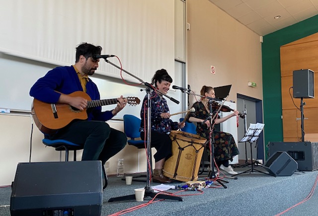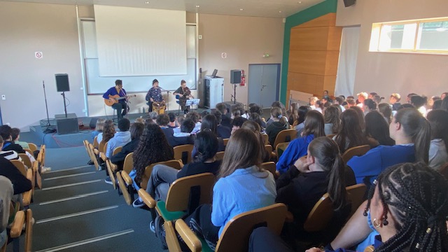 Concert de musique chilienne qui a eu lieu le 28 avril 2025 au lycée. Les élèves de seconde ont découvert quelques chansons mythiques du répertoire musical chilien et échanger avec les musiciens.